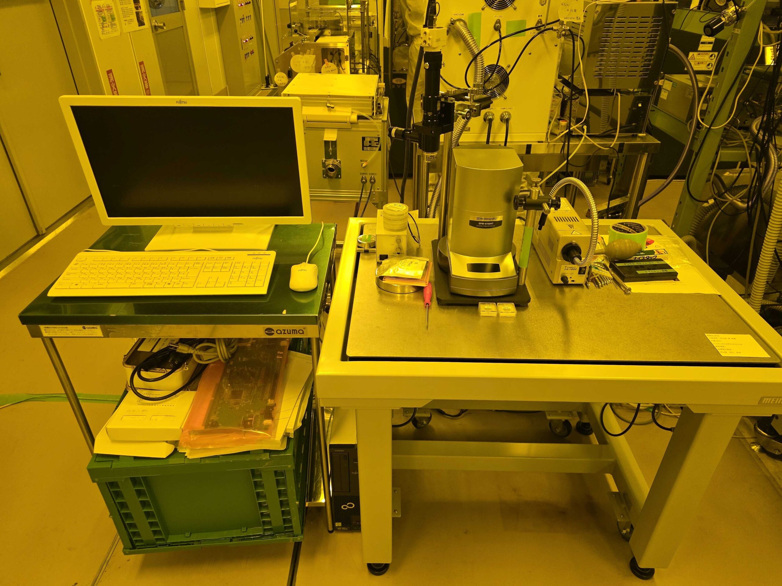 SHIMADZU SPM-9700HT 試料表面を微小なプローブ(探針)で走査し、試料の三次元形状や局所的物性を高倍率で観察する顕微鏡です。ハイスループット観察が可能です。