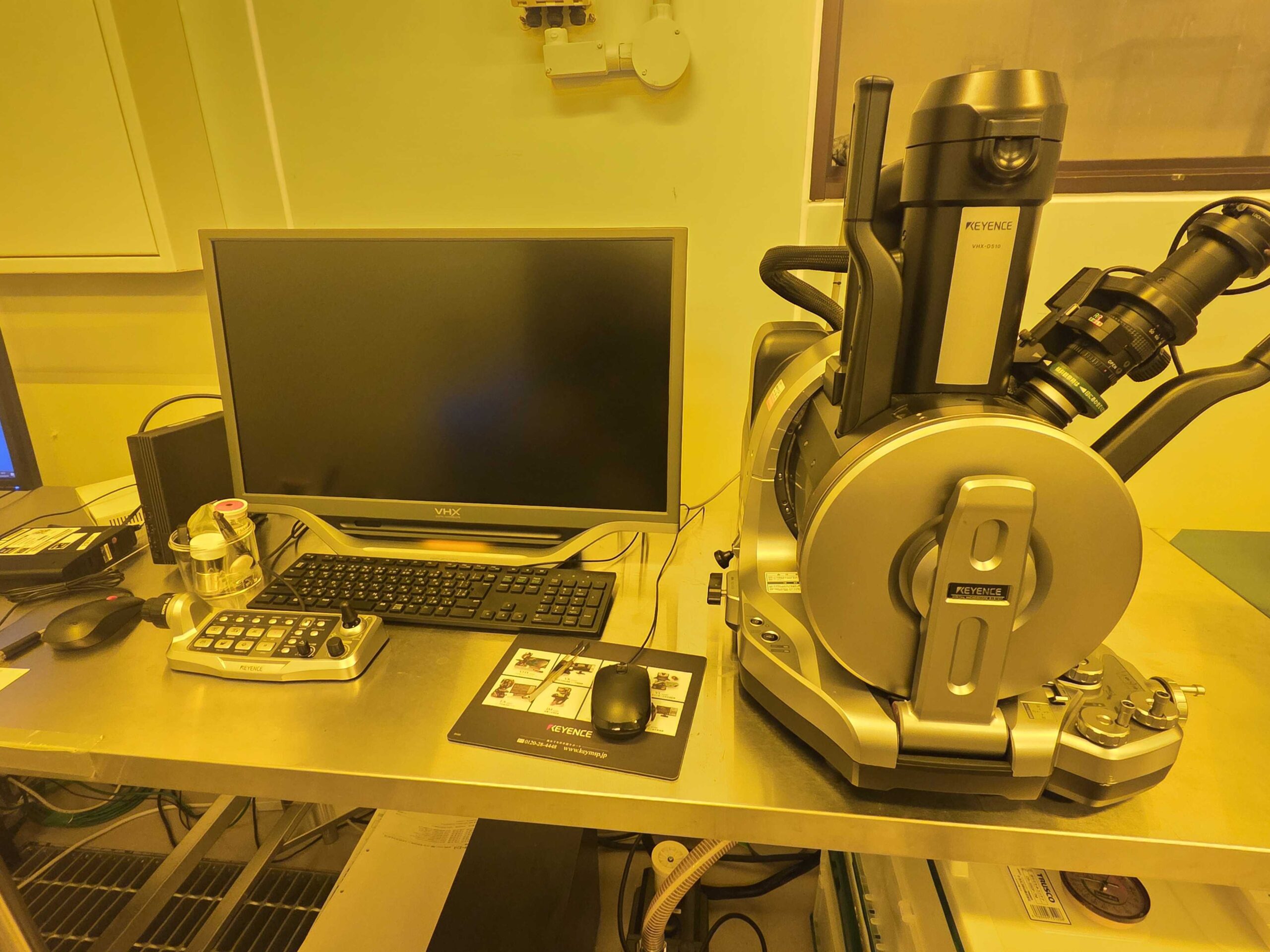 KEYENCE VHX-D510 試料表面に電子線を照射し、反射した電子線を像として観察する装置。試料室内を真空状態にし、超深度レンズにより試料を撮影します。光学レンズと超深度レンズの画像を合成し、精細な画像を得ることが…