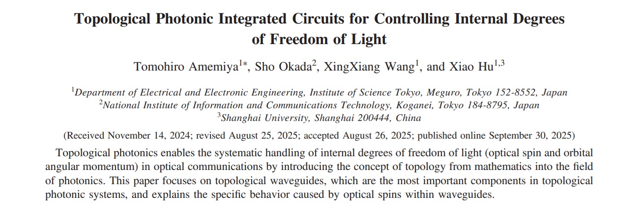 J. Phys. Soc. Jpn.に招待論文が掲載されました(T. Amemiya et al., J. Phys. Soc. Jpn. 94, 101005)。論文では、光の内部自由度を制御可能なトポロジカル光回路の内容を扱っています。