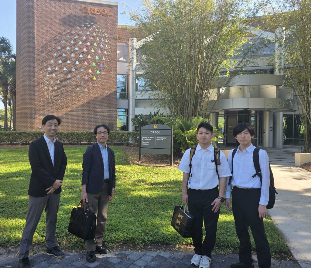 JST ASPIREプロジェクトの一環で、セントラルフロリダ大学を訪問しました。Schoenfeld副学長との会談、ASPIRE共同研究先であるKhanikaev教授のグループを含む光学・フォトニクス研究センター(CREOL)の見学、2026年度に留学予定の学生(山地, 海野)の研究方針などを含めた打ち合わせを行いました。